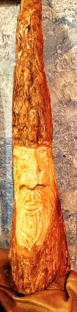 This is a cypress knee I carved with a dremel tool in a wizard face.