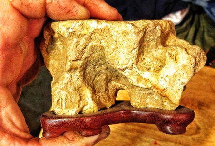 This is a suiseki I liberated from a stone bed in a local theme park. I carved the diaza for it.
