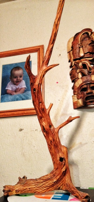 Here’s another. I used an angle grinder with a carving blade and then sanding disks and I finished with sand paper. These are also unfinished except for sanding