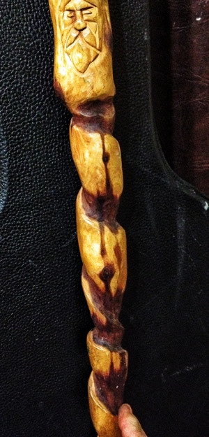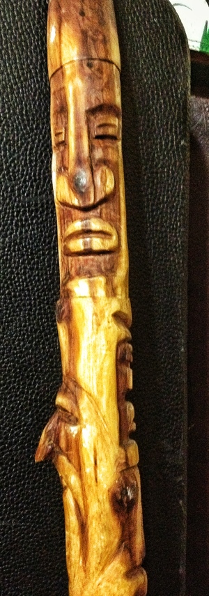 This is a walking stick I carved. Red cedar and oiled with tung oil. Details to follow