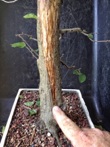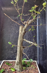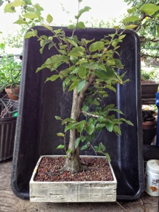 As you see, I put it into a training pot already and I’ve pruned it. I got it from Steve Smith of Smitty’s Bonsai. It is prone to branch dieback when pruned and it does not heal well. Which makes it ideal for the opportunity to use hollow features.