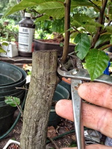 I’ve scraped away the bark where it’s died back. Which is about where I thought it might be.