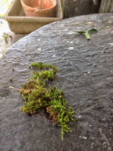 Sometimes moss is essential in keeping the soil onto the planting. This slab-planting’s soil would just scatter and wash away without the moss I placed on it.