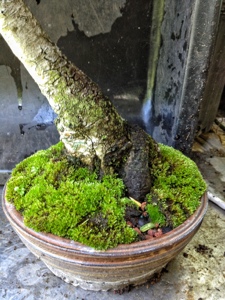 It grows better on a bonsai if you cover the top layer of soil with a top dressing of “shohin mix”. The sifted soil that has particle size of 1/8th to 1/16th of an inch.