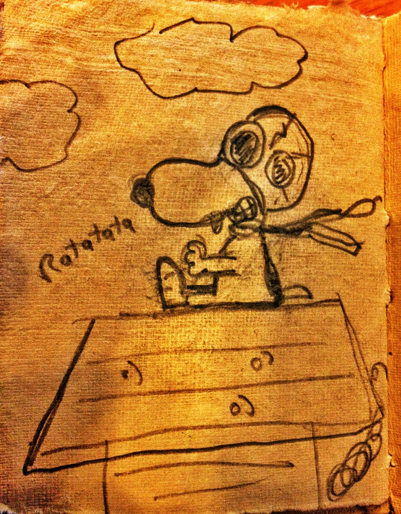 Snoopy in a desperate dogfight with the Red Baron. Ratatatatat!