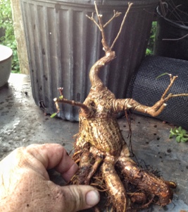 Continuing my binge reading of your blog and seriously laughing out loud. Thanks for all the education, hard to visualize in 3D but the pictures are still very helpful. The photo where you first put it in the pot with no soil looks like a Harry Potter mandrake sitting in a little bathtub.