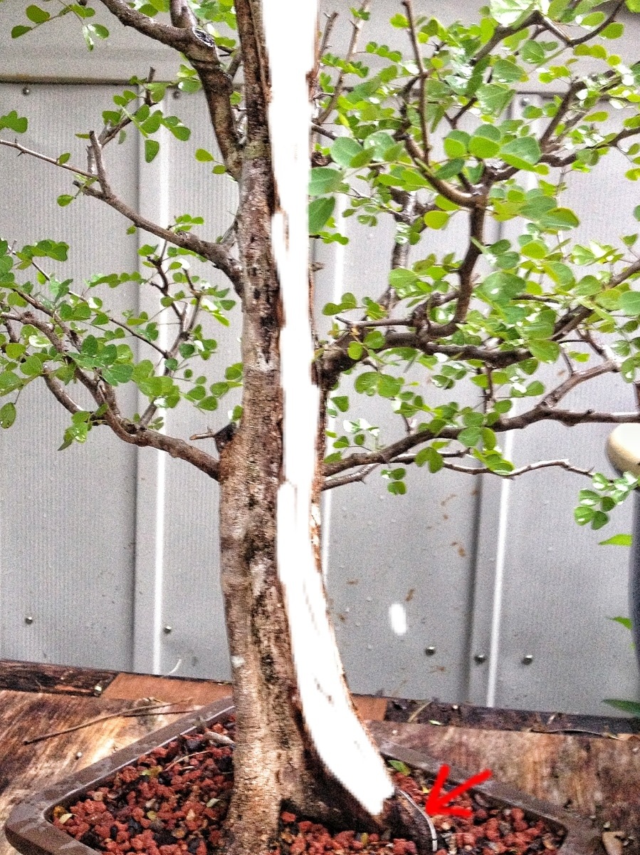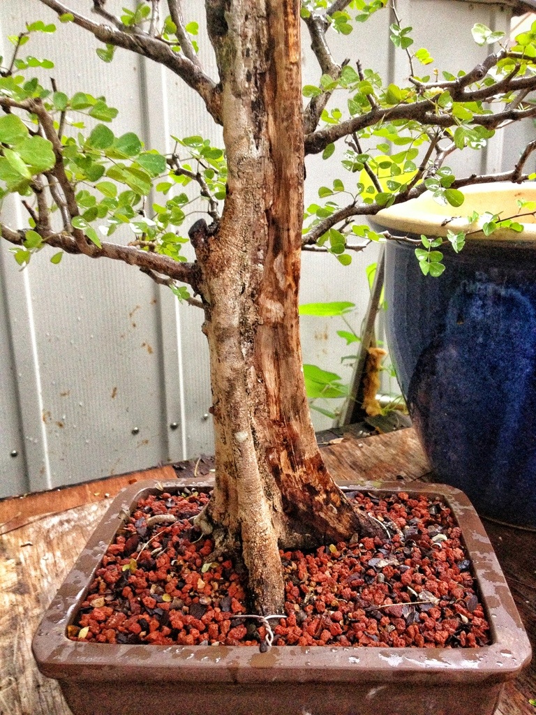 This is the trees left side. Notice the nice heavy branch. This will help to give the tree some age.