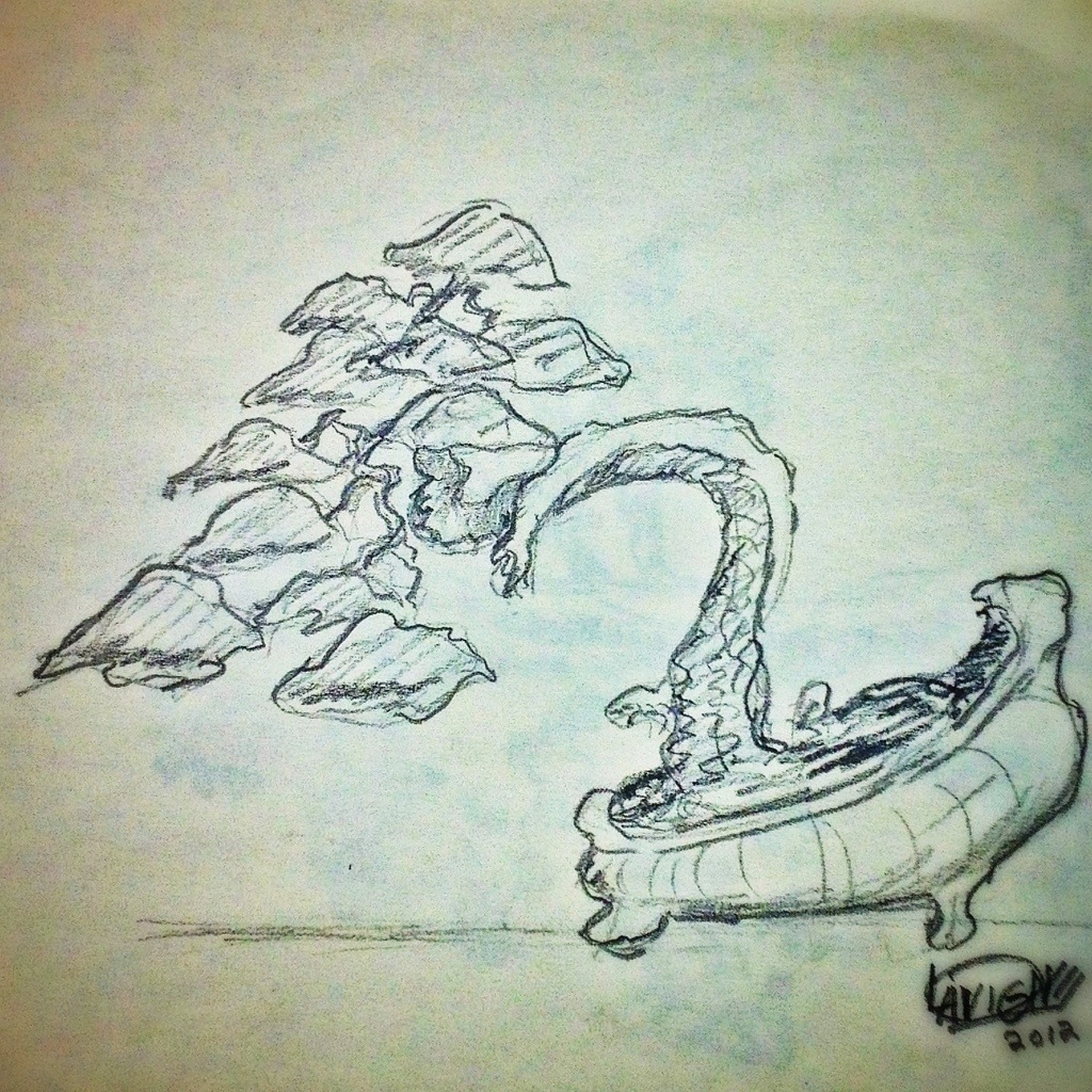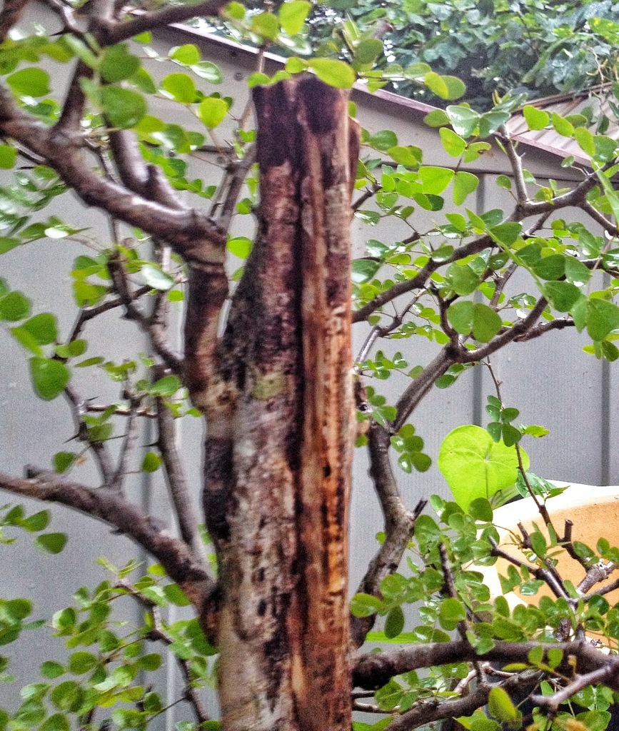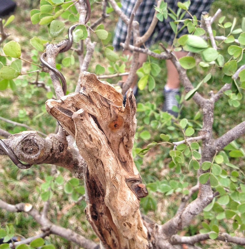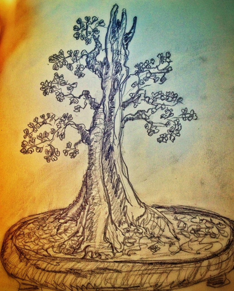 To achieve the shorter, thicker branches in the drawing requires growing out and then cutting back repeatedly. The growth on the Campeche is quite vigorous and requires a bit of diligence. But this also lends itself to a faster turnover time in the maturation of the tree.