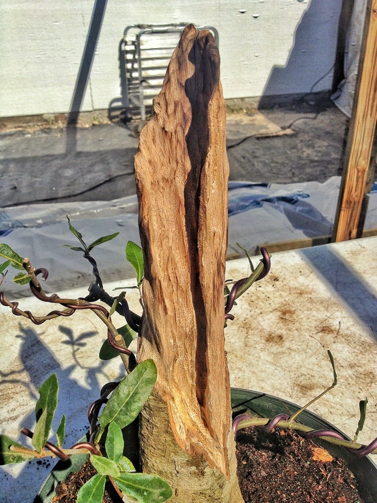 This detail shows the straight cut top that’s typical of a collected trunk. It’s my job to “Make it purty”.