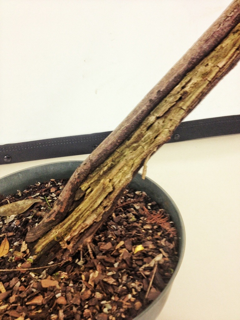 This shari (shari is the Japanese work for “section of trunk missing bark”) was what I liked about this little tree. It is incredible and old deadwood. Where I collected this tree was in a dry retention pond ( I know. Oxymoron. But that’s civil engineering jargon for you) and it survived a drought we had about 6 years ago.