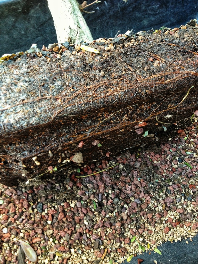 And, by trimming the roots (freeing up space in the pot) we give the tree space to grow, thereby improving the overall growth rate of the tree. If its not growing its dying (unless its winter I guess.)