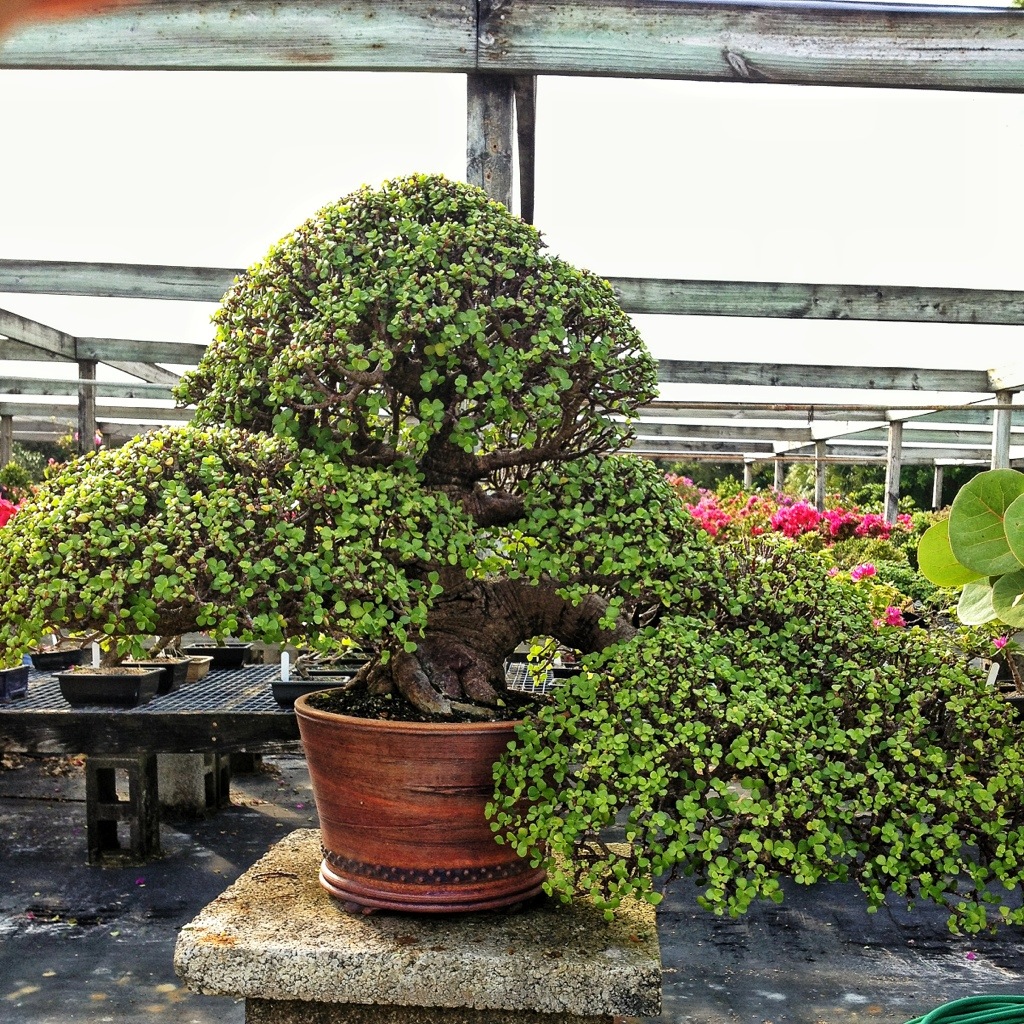 Robert Stevens’ and the Indonesian artists’ work with pemphis acidua and tamarind; the Taiwanese ficus; the English elms and hawthorn; the US work with conocarpus erectus and taxodium distichum- these are all non-traditional trees. I think they are all bonsai. You?