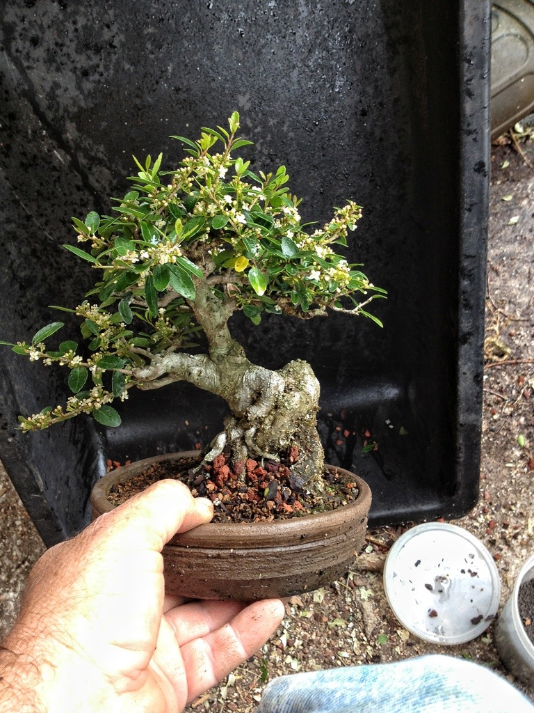 This tree is at the end of the rejuve. Last year, I repotted it into a slightly larger pot with better drainage, let it grow without much trimming, and made sure that it stayed fertilized. It has a lot of flowers so it must be happy.