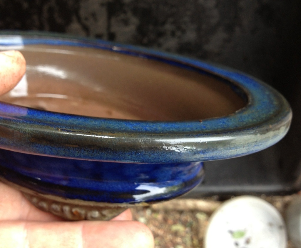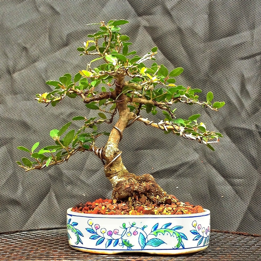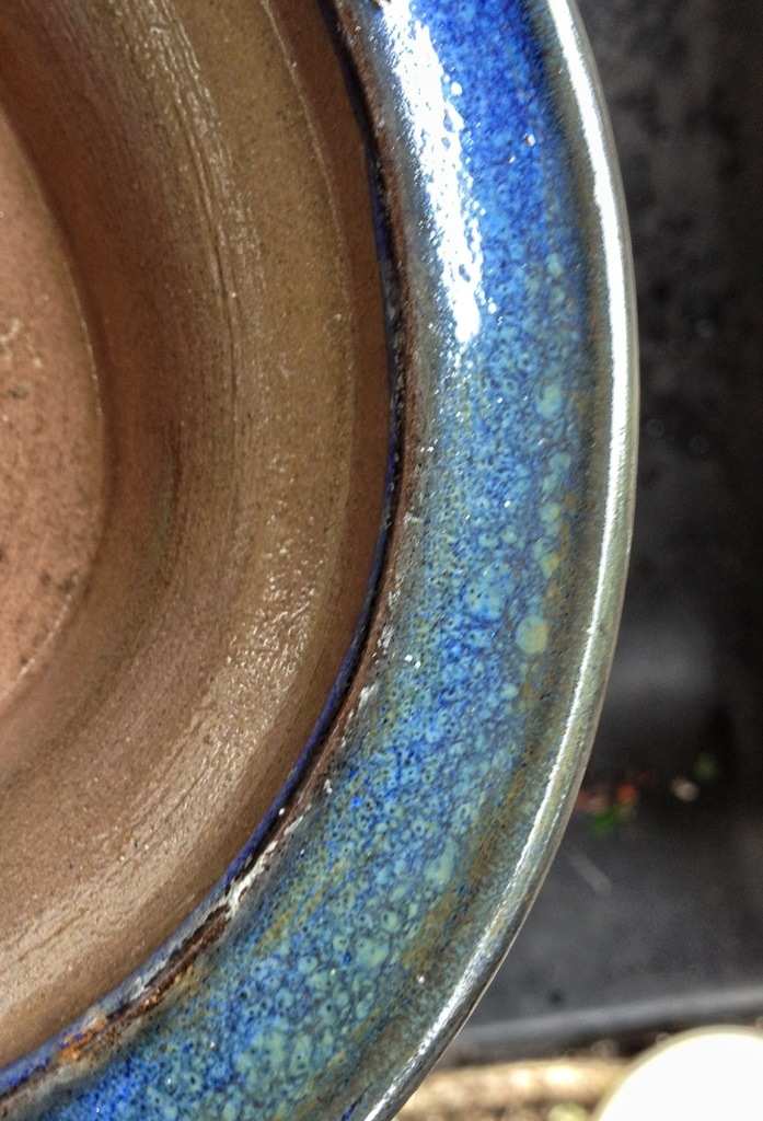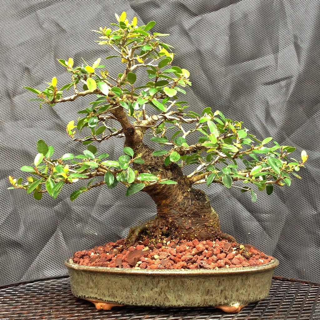 It’s in a beautiful subtlety glazed Taiko Earth pot by Rob Addonizio. It needs a repotting and some branch work.