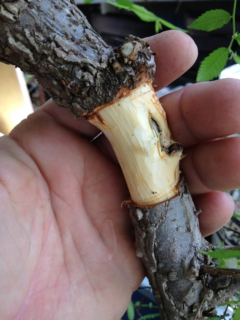 and peel the bark away down to the wood.