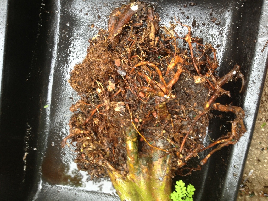 Kinda scary, isn’t it. There might be a handful of feeder roots. Maybe. No more than that (when I say a handful I mean, like 5. Not as much as will fit in my hand)