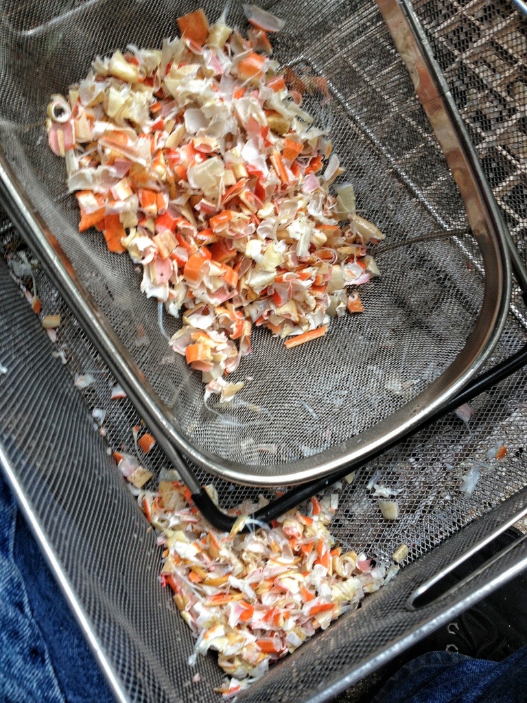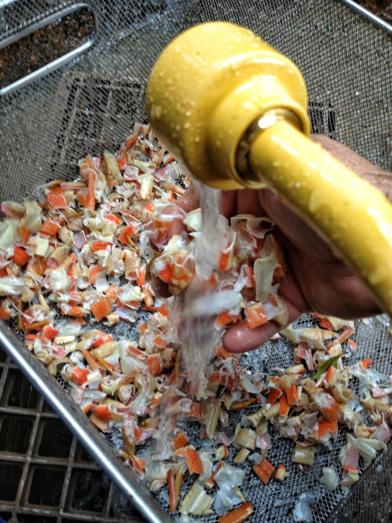 Now I have to clean and chop the crab shells. She said I was on my own there.