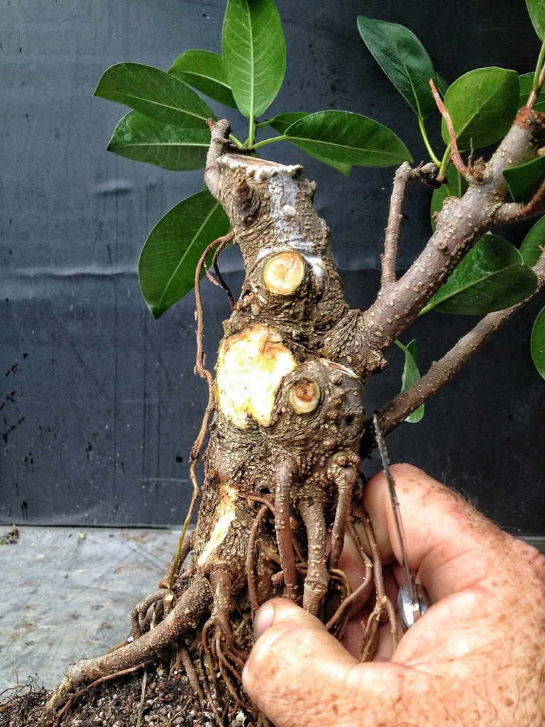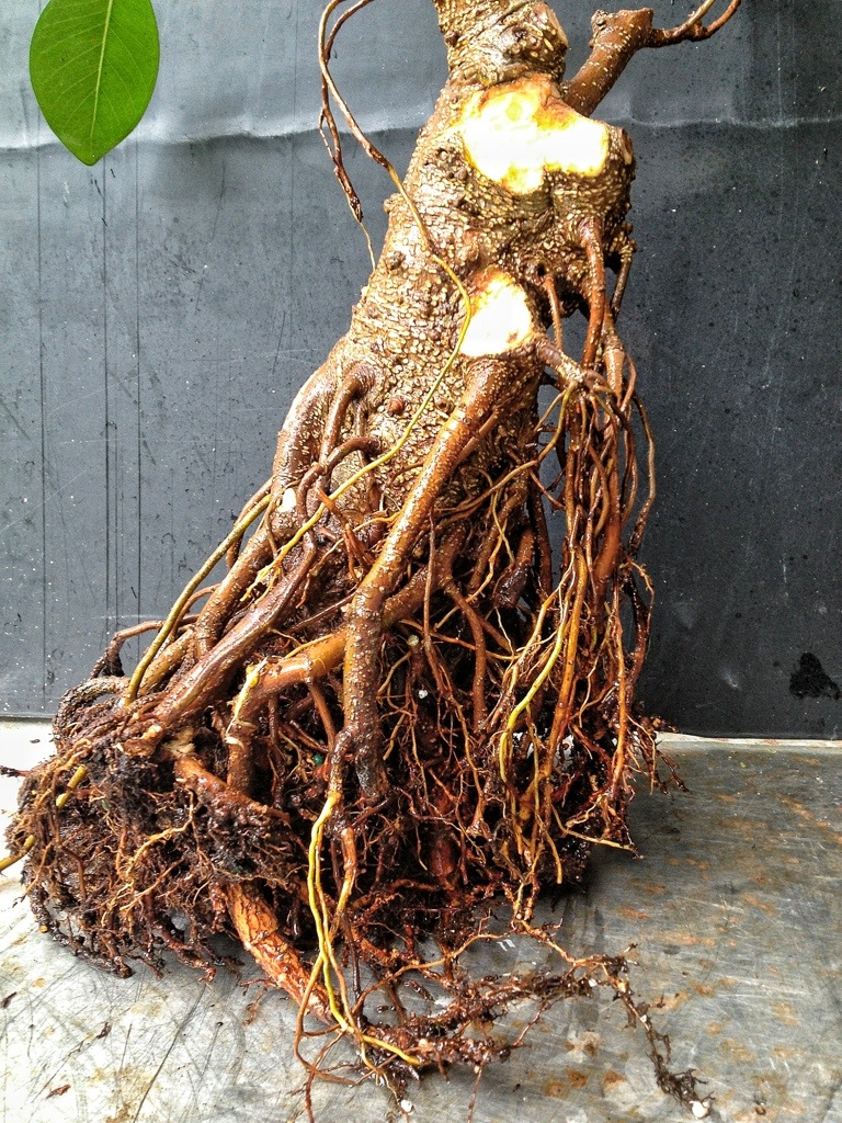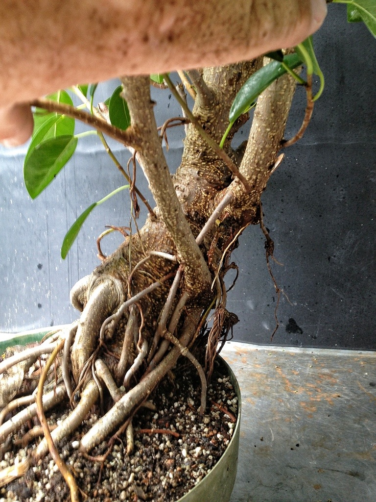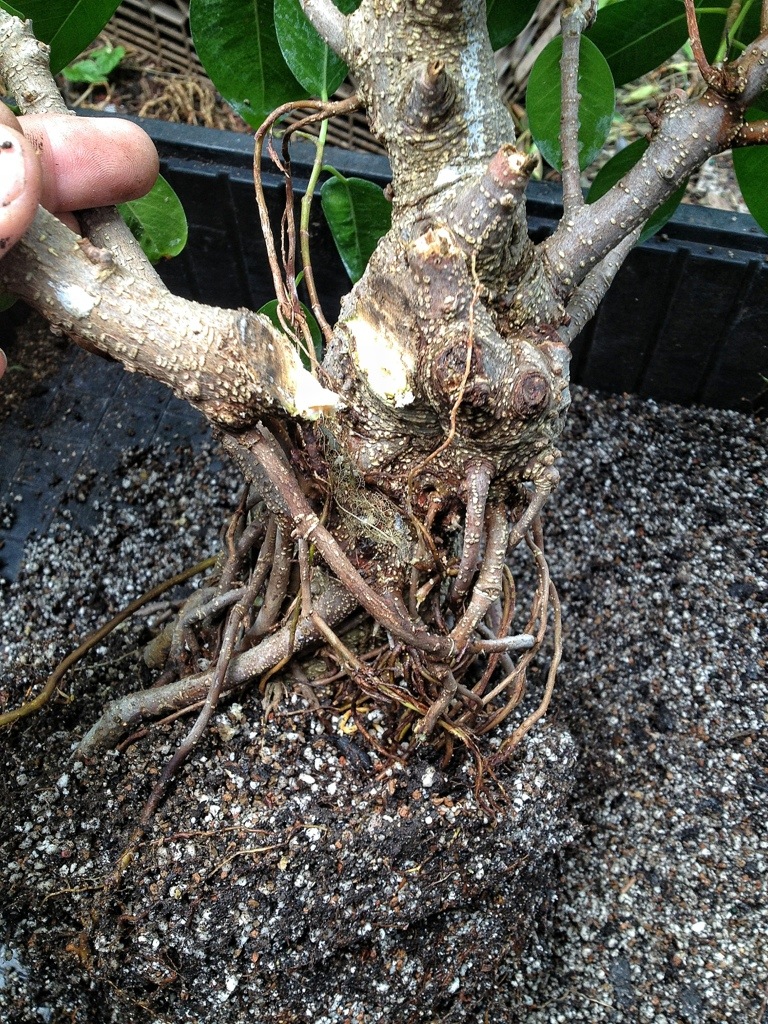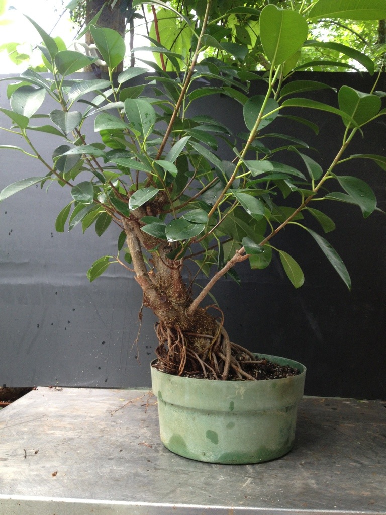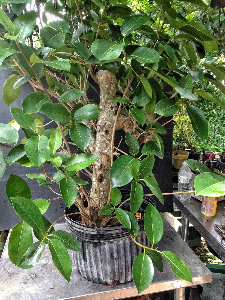 I’ve been referring to a few of my Jim Smith trees as ‘natalesis’ which apparently is wrong. Maybe they’re ’89s or something. I have some of the larger-leaved strangler or natalensis or whatever they are. Aggressive aerial roots is an understatement, give them some shade and it looks like spaghetti under there.