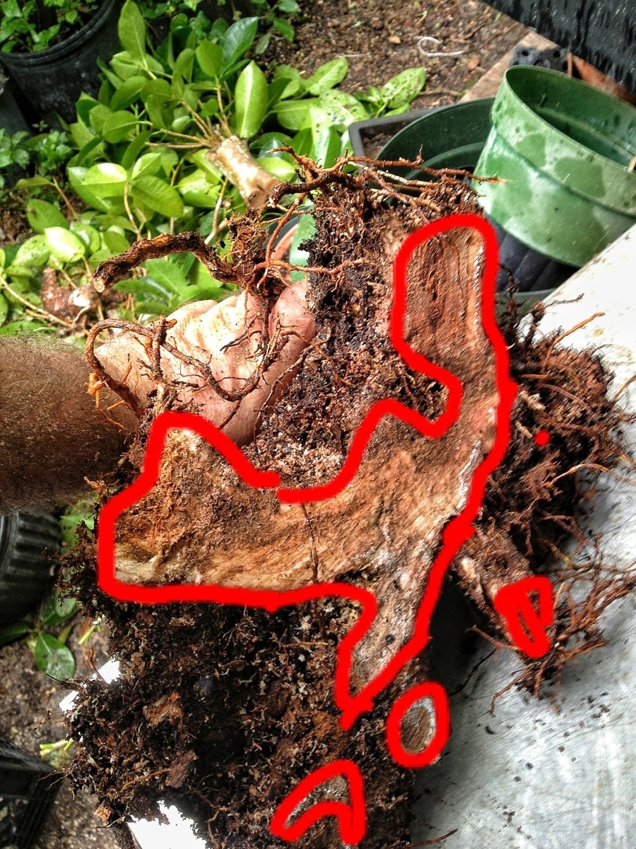roots should emerge from near that cut edge