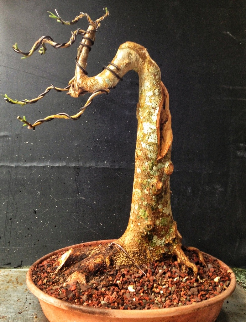 Who, in their right mind, would ever think that a strangler fig, with the ginormous leaves and the aggressive aerial roots, would (or could) make a good bonsai?