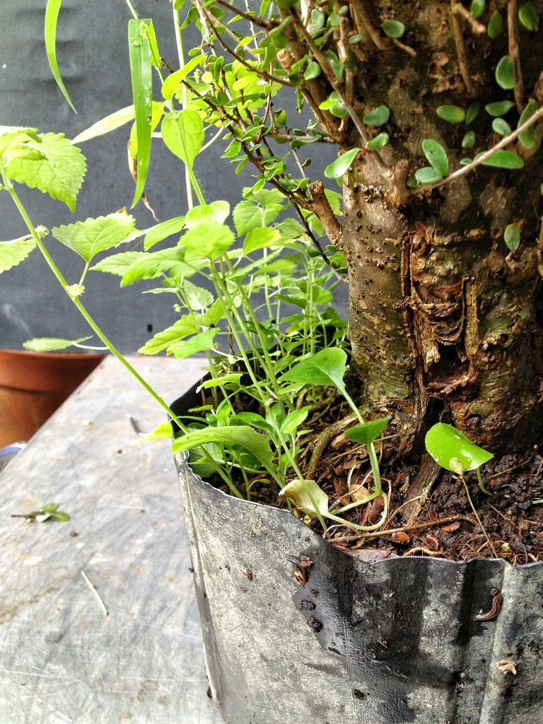 Even the weeds are bigger than some $35 starter bonsai trees for sale on eBay.