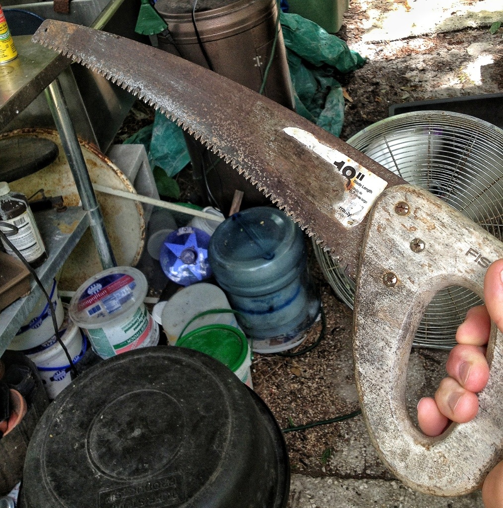 To The Nook! (With electricity and reciprocating saws and powerful fans to cool me off. Not to mention a roof and the shade that entails)