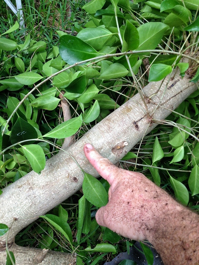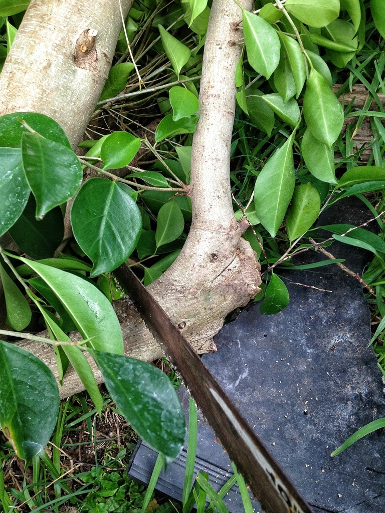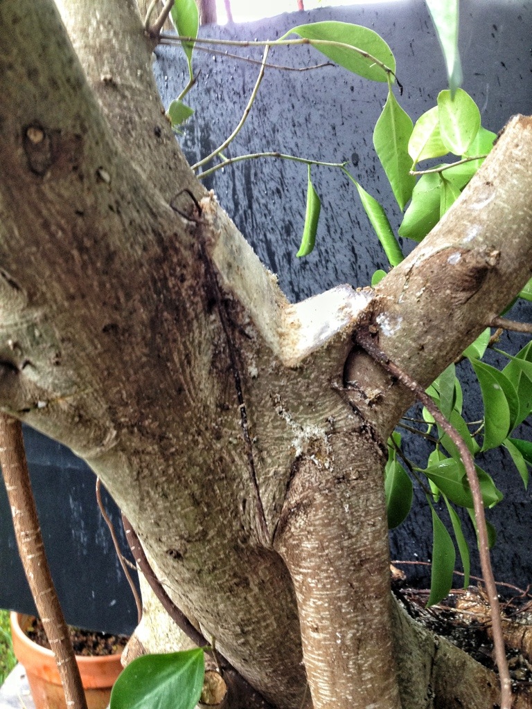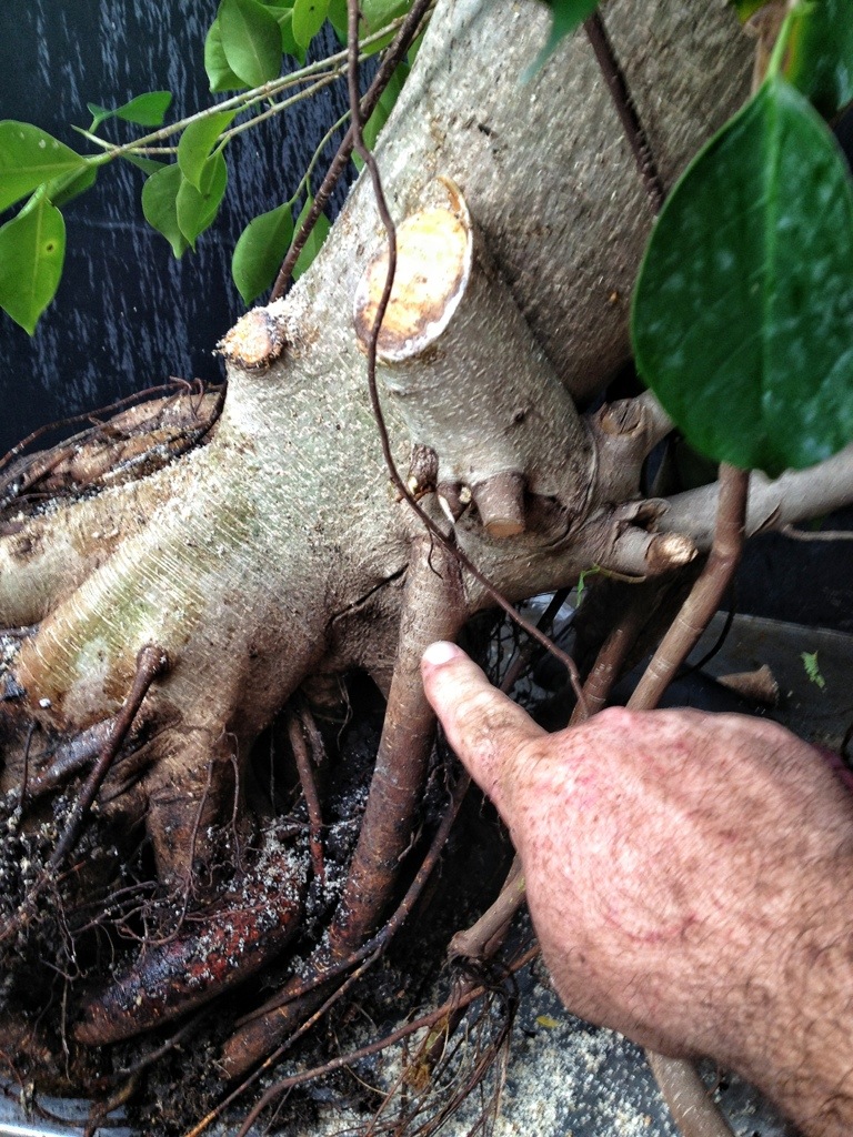 I forgot to point out, ficus sap is composed of latex and can be irritating to some people. And even lethal to those with a severe latex allergy. Wear gloves (neoprene, not rubber) when handling ficus.