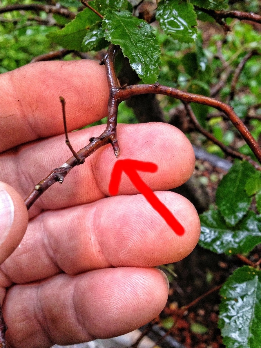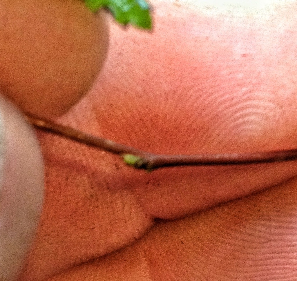Above is the leaf with a swelling bud at the base of the petiole. The trick is, when removing that leaf, not removing or ruining the bud at the same time.