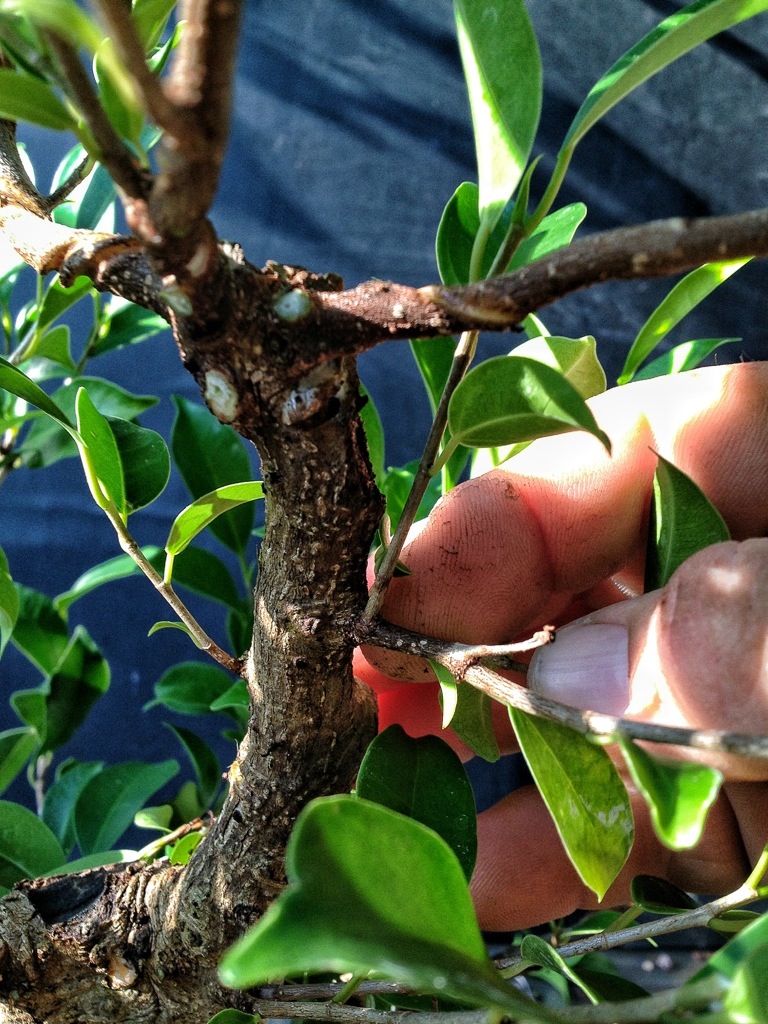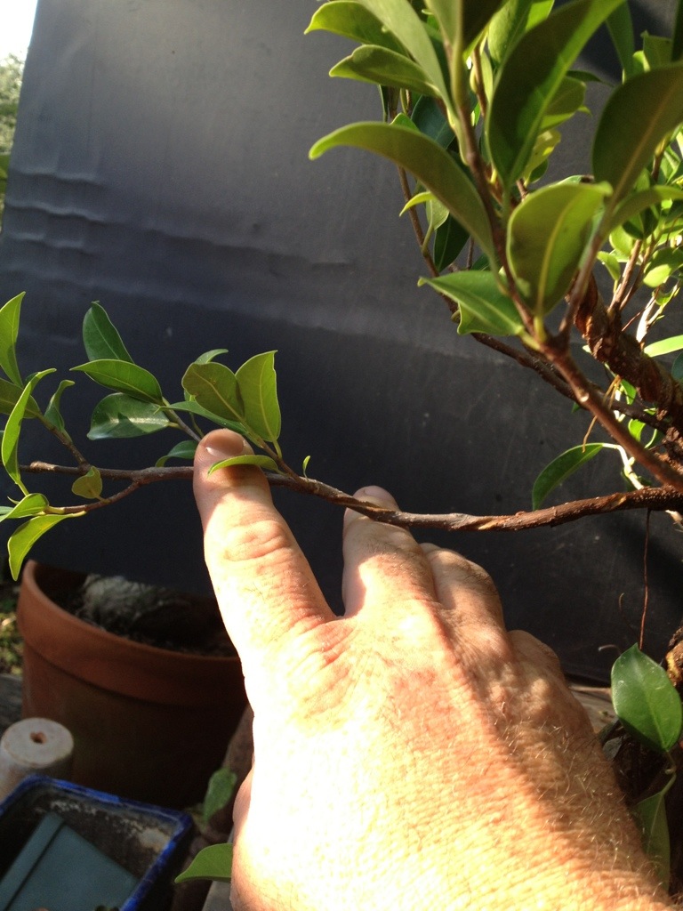 I know it looks bad and that there are certain people out there who think that a wire mark on a branch is sacrilege but a ficus needs it to really set the branches.