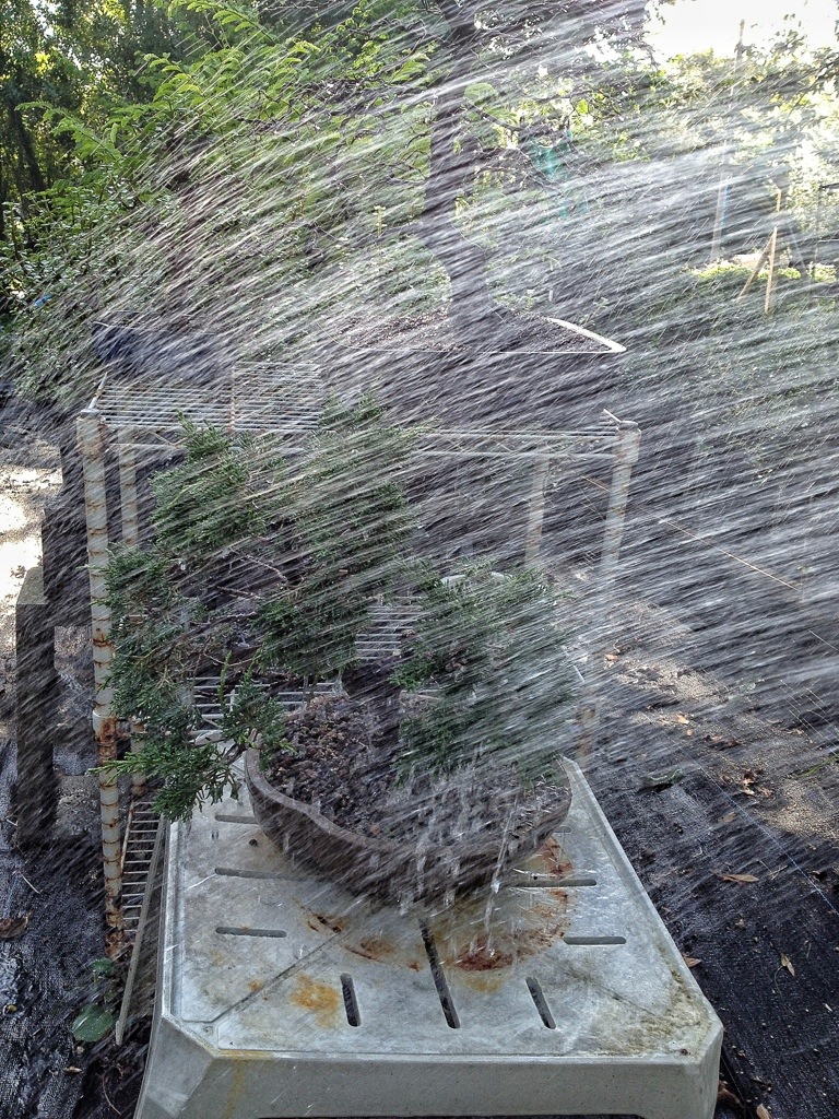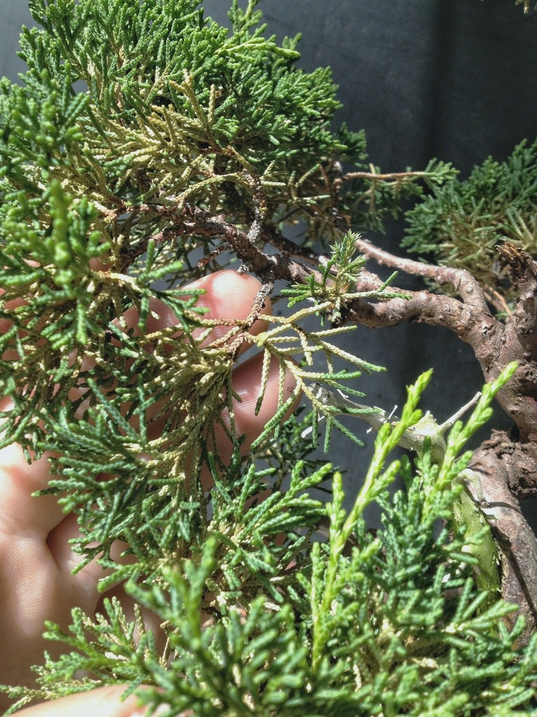 As far as trying to figure out when to water, it is tough with juniper. I water every other day, allowing the soil to dry out, but use a hard blast of water on the foliage every day. I’m in Florida, so it dries out in the sun.