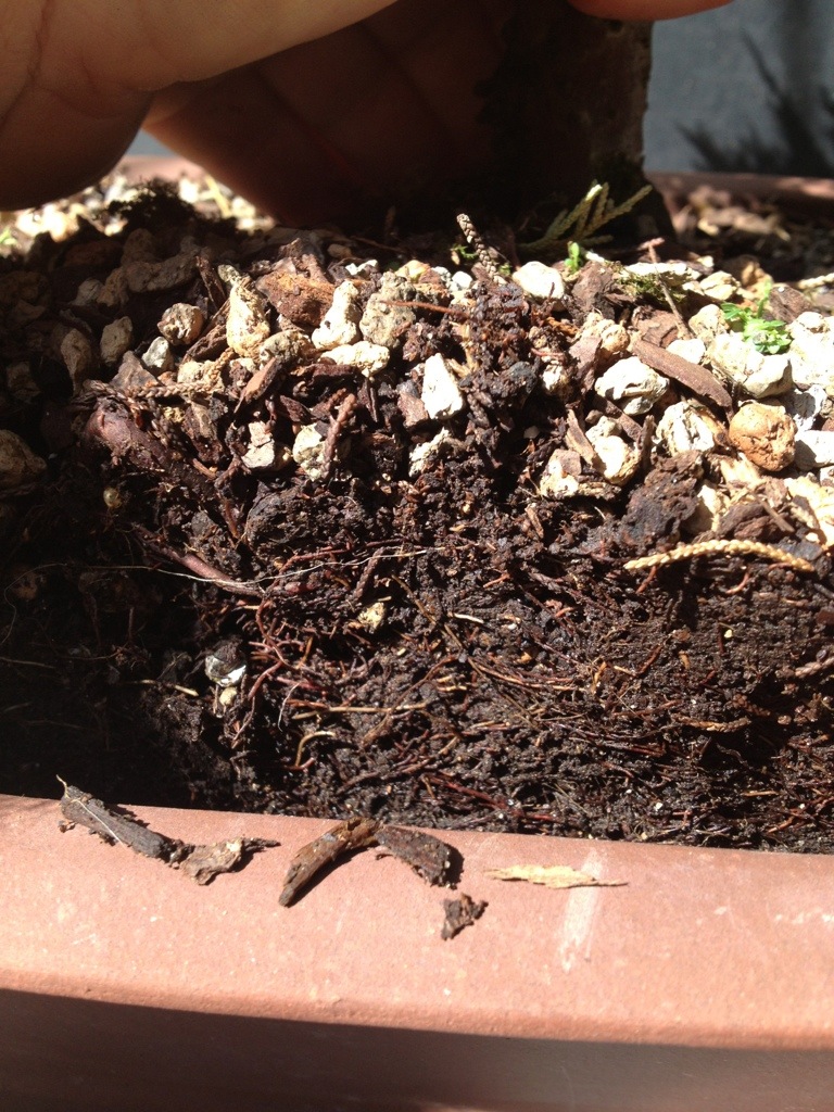 shows that they are surprisingly healthy. It also shows that the pleasing soil mix on top is mostly only on top. Sigh.