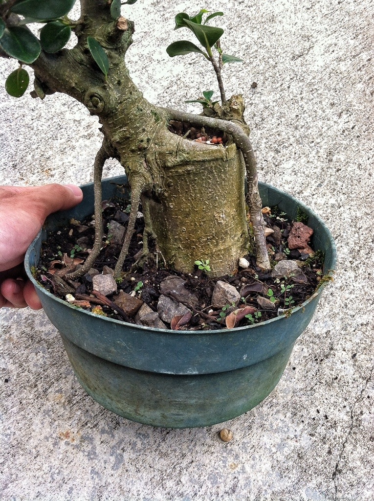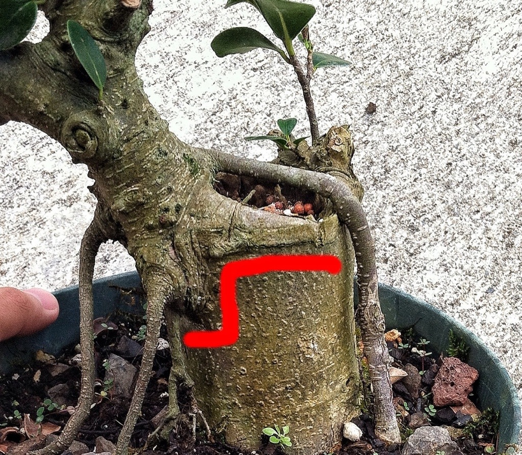 I was wondering if you’d entertain a question, or maybe more a plea for advice. Attached are a couple pictures of a small-leaved ficus I bought cheap from a local nursery. It looks like it got chopped back HARD at some point and has a hilariously wide and awkward stump (about soda can diameter). I root pruned and repotted it a few months ago and its doing well.