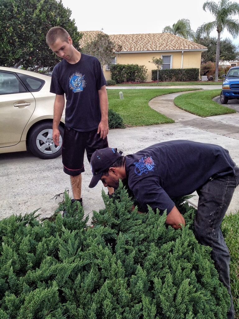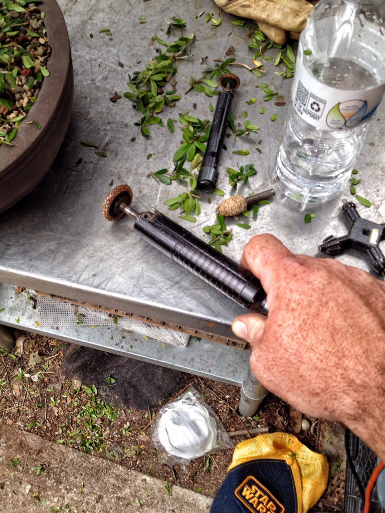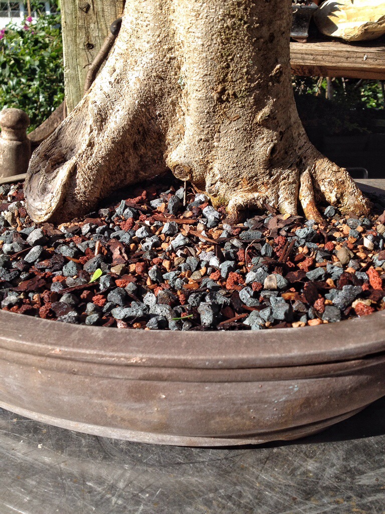 What I did first (remember this is a two month show) was to remove about a half an inch of the top soil, put down some fertilizer, and replace the topsoil with some fresh mix.