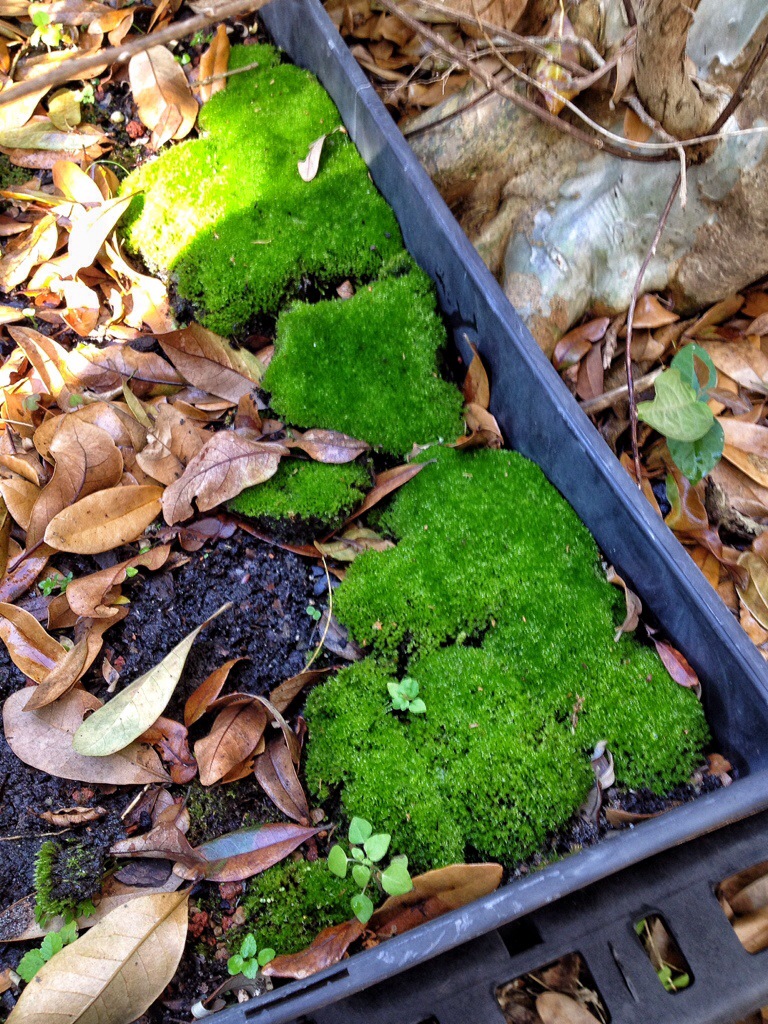 And the next thing to do is to vary the ages of the moss. Have green, brown, and blooming stages in the pot.