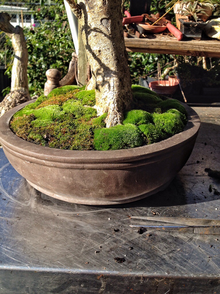 The trick to mossing and making it look natural (like it’s been there awhile) is to make sure it’s under the pot edge.