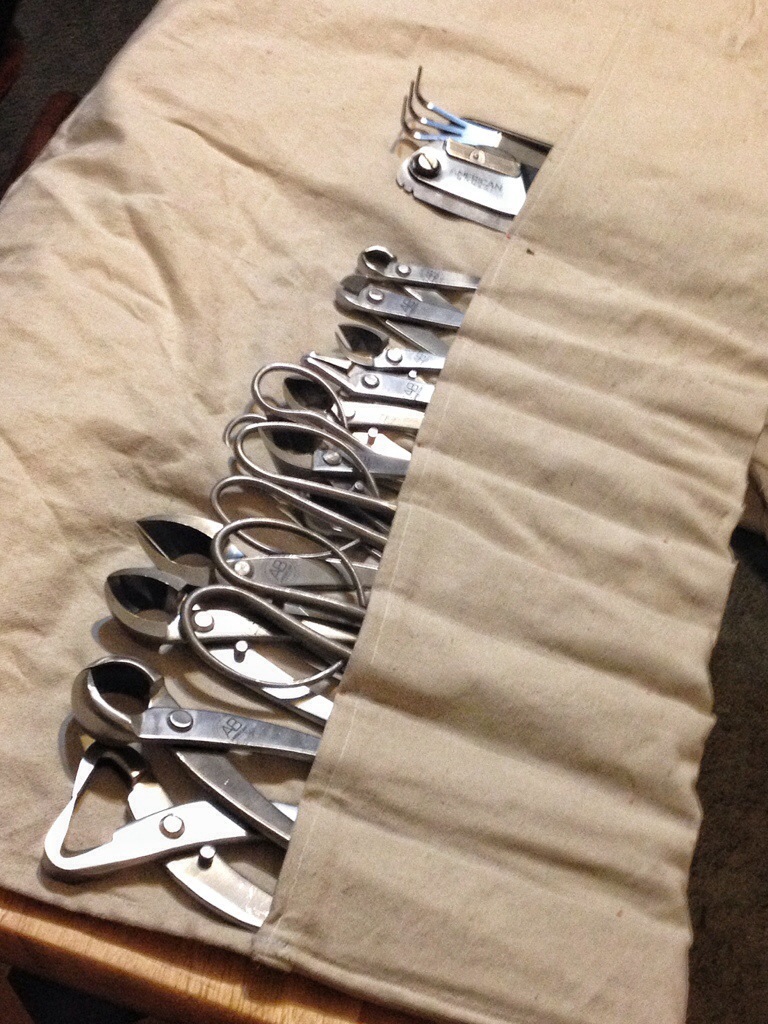 My old roll is actually not a bonsai tool roll but a paintbrush roll.