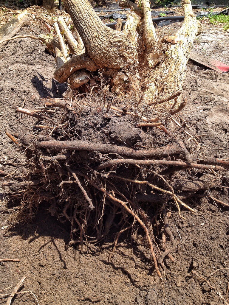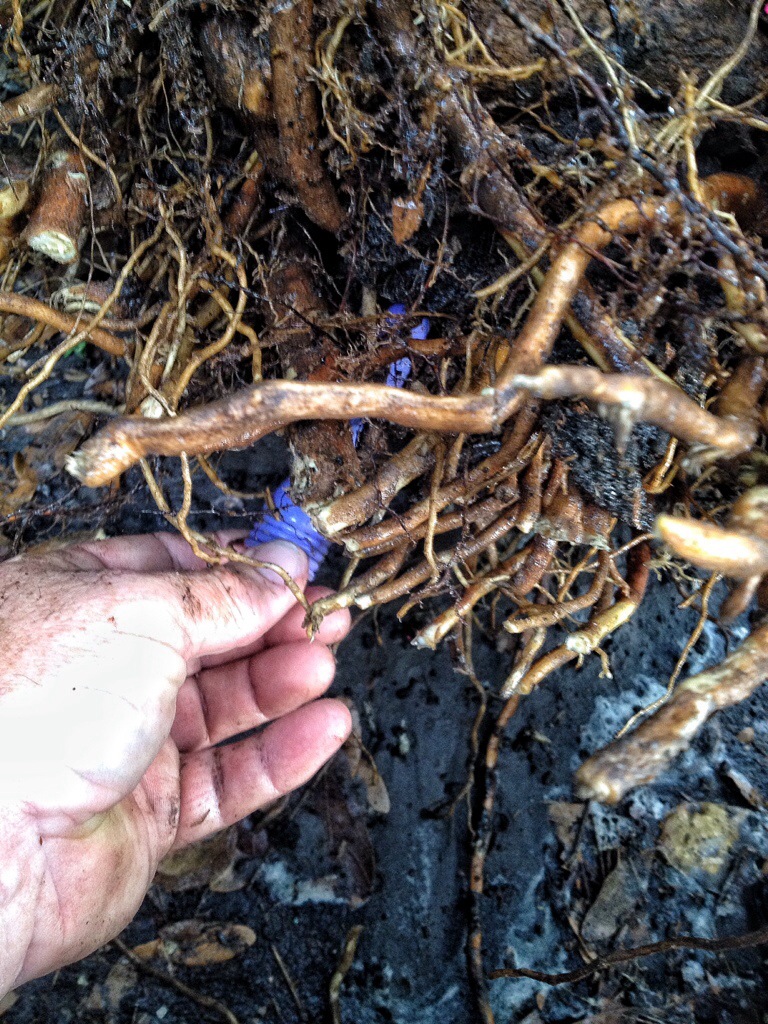 If you are collecting a bougie, make sure that you wash out all the dirt from the roots. If you don’t, the tree will stay too wet and all those cut ends will start to rot, sure as the rain.