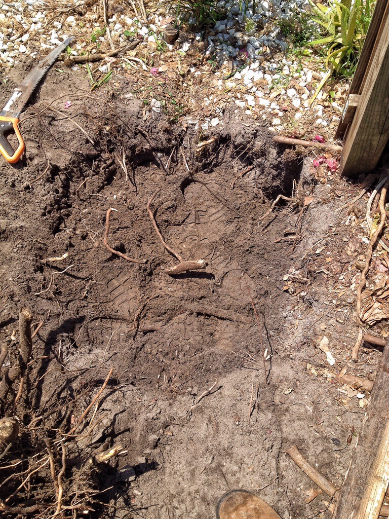 I did have a crooked little hand trowel I borrowed from Scott, Diane’s husband.