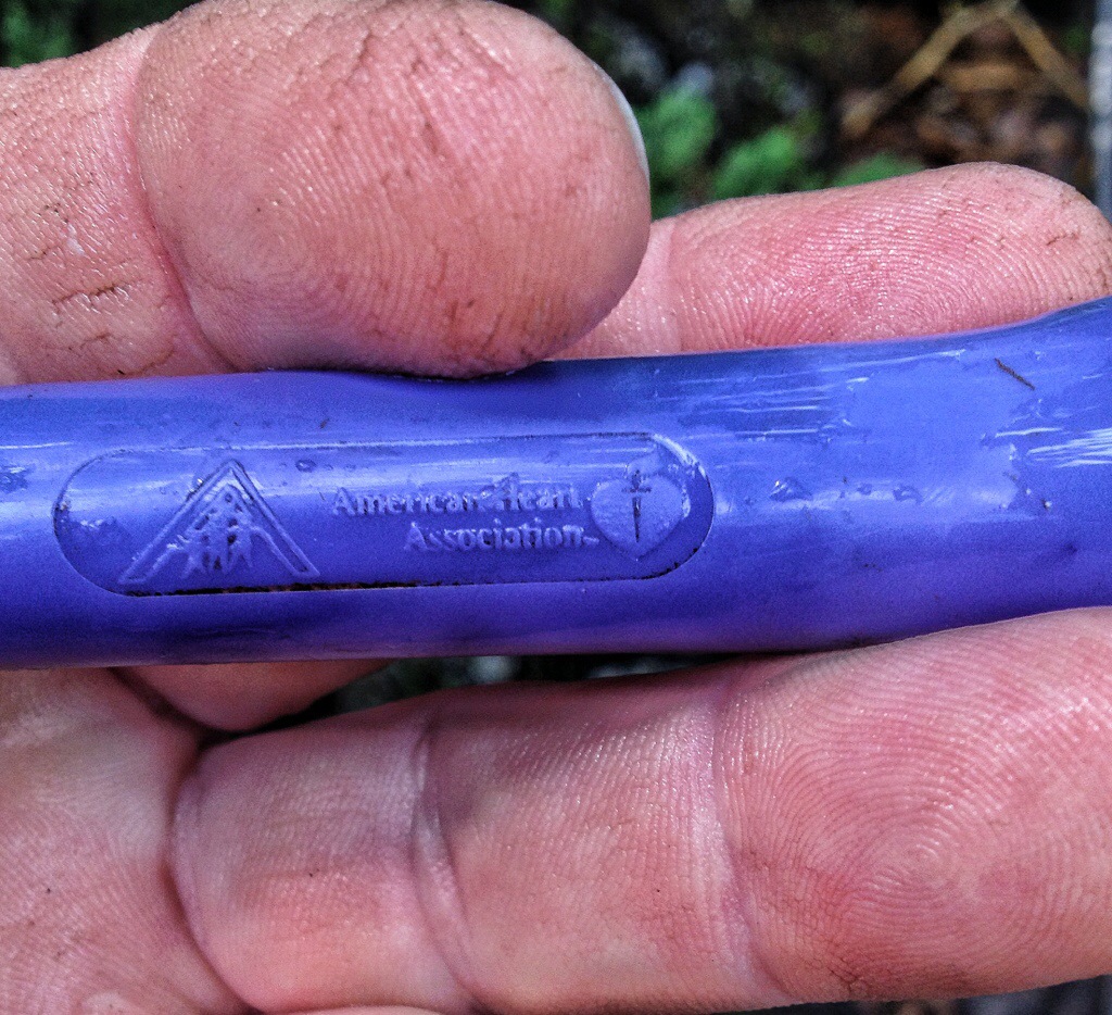 Looks like the handle from a Jump rope. The heart association used to have fund raisers for kids and jump rope were a standard prize