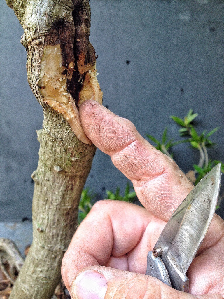 And to carve the wound inward with a sharp knife.