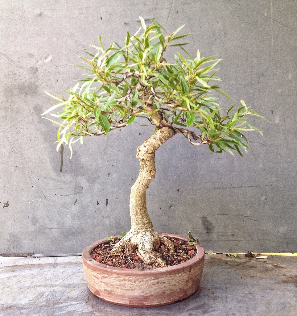 It is the ubiquitously tropical bonsai subject-Ficus salicaria (née nerifolia, salicifolia, exotica et al), the Nomine Vulgaris being “willow leaf ficus”.