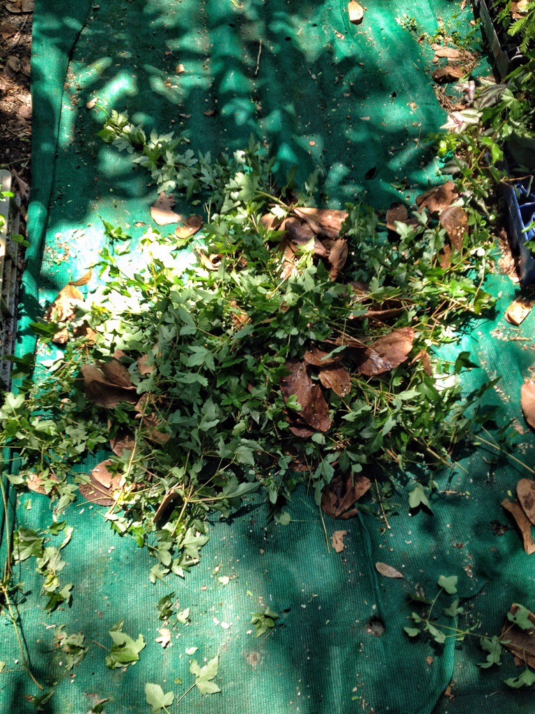 After some serious defoliating and judicious pruning I was left with a big ol’ pile of debris…..