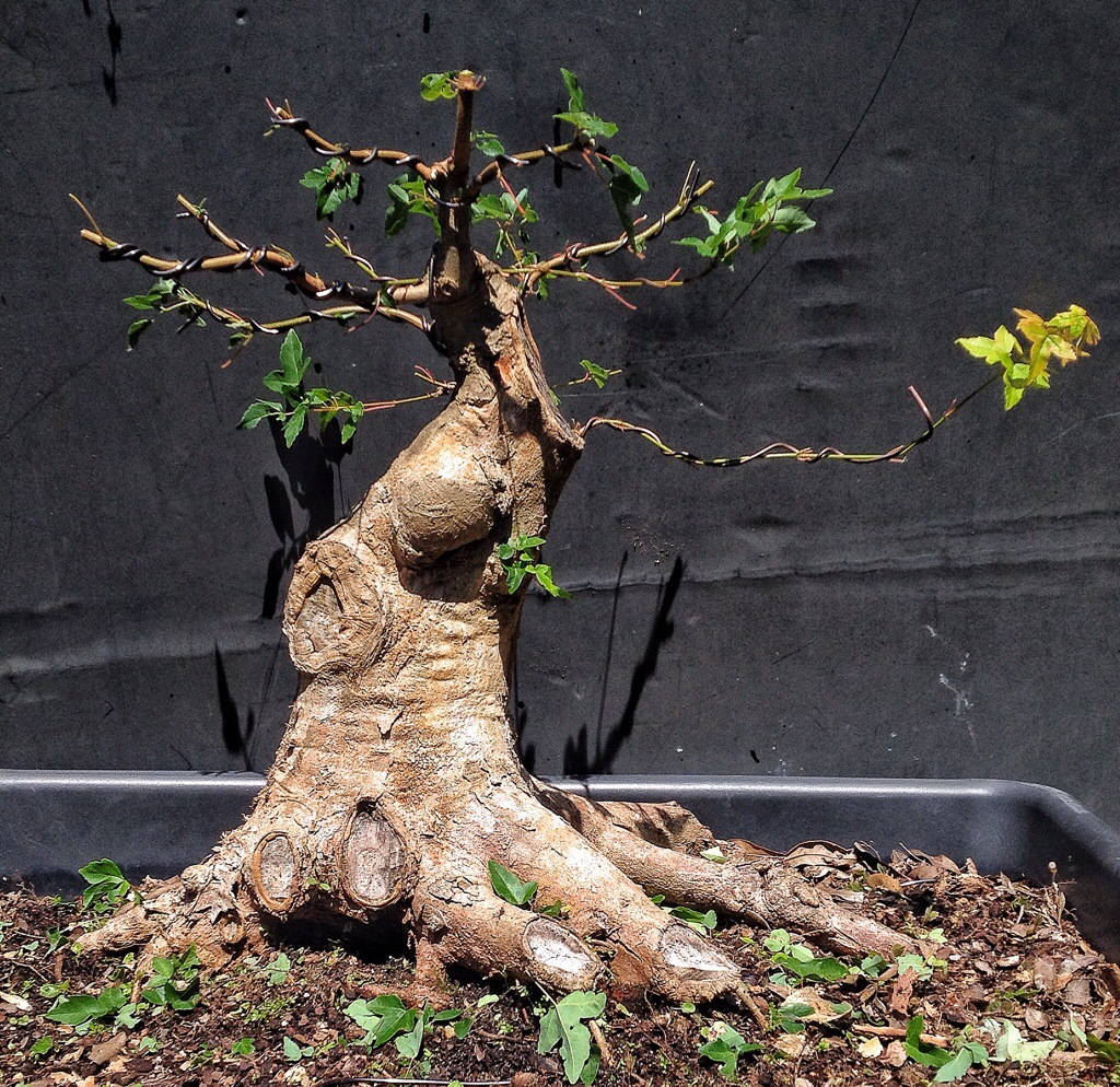 I did a gross root pruning on the second tree (basically turning the tree in the pot, cutting some large roots and replacing soil) but not on the third.