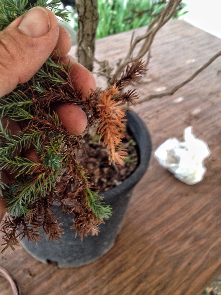 The owner needs to keep the tree pinched back and do it often (I should note, I used scissors on it so there will be browning on the tips from the final pruning I did. Maintenance should generally be done with the fingers by pinching back new growth).
