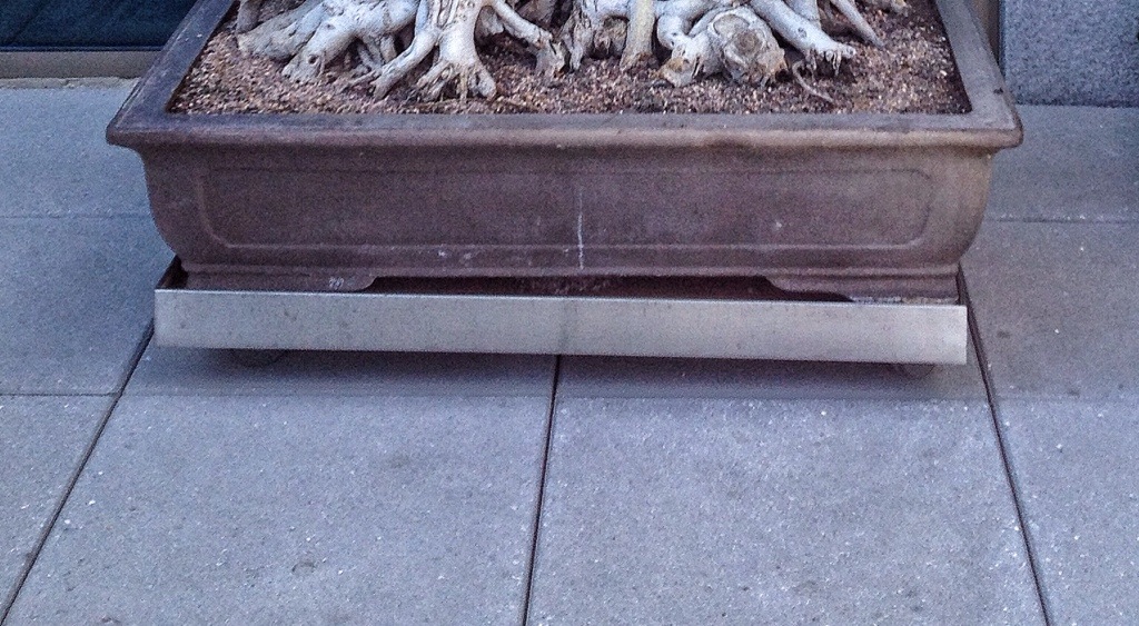 Usually a different leaf variety is grafted on (f. Microcarpa grows faster than, say, the green island or the kenman varieties, that have nicer leaves) but they used the species type microcarpa on this one.