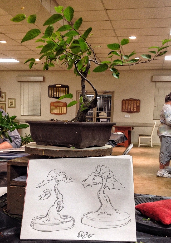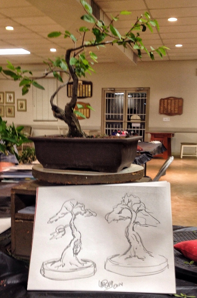 Well, it turns out that Ron is actually an officer of the North Florida Bonsai Club in Jacksonville (boy is my face red) and because of my sketching and drawing he came up with an idea for a class at his club.