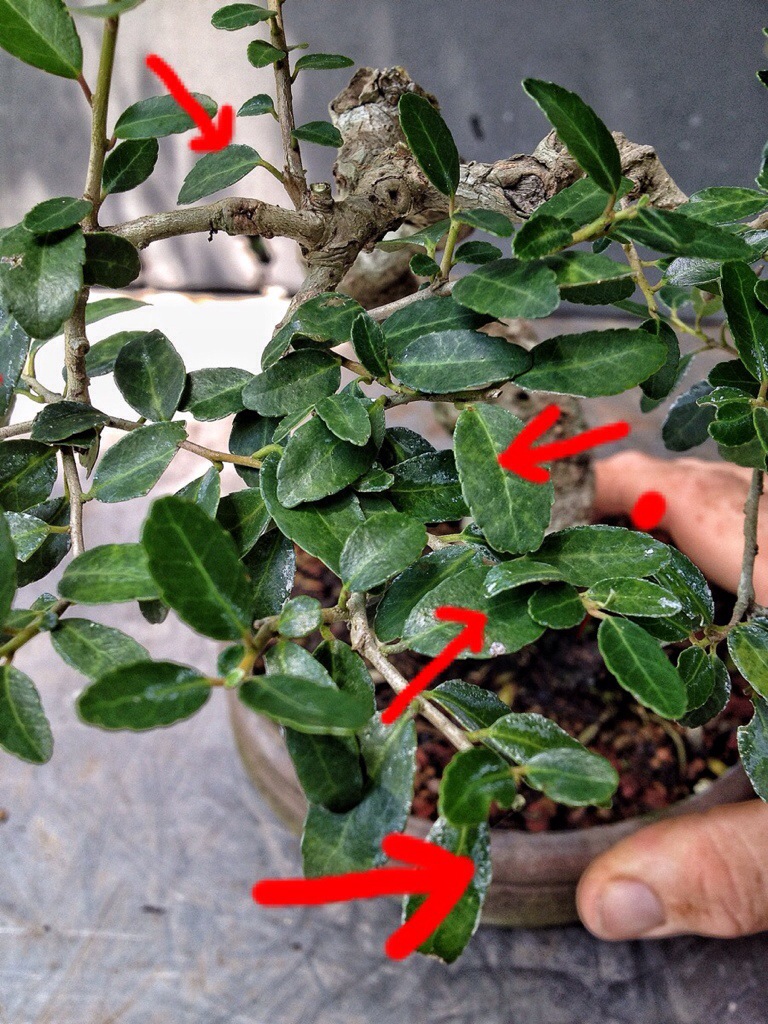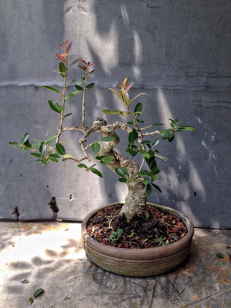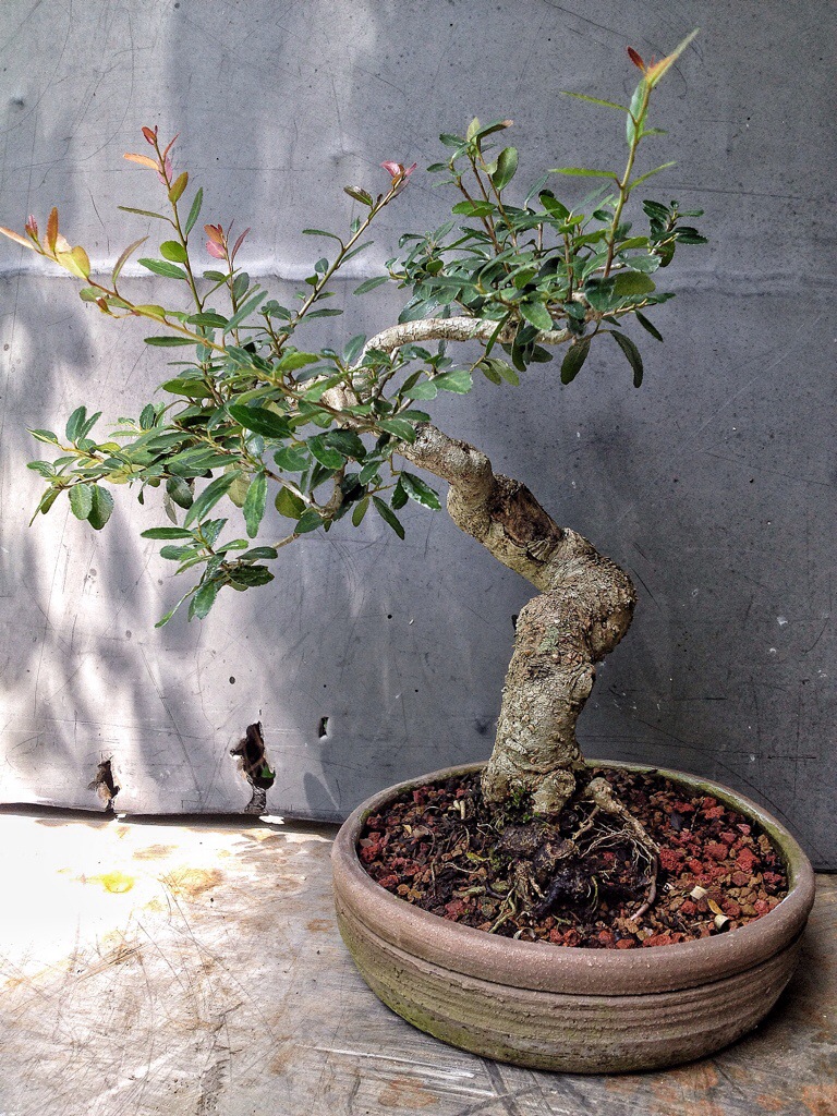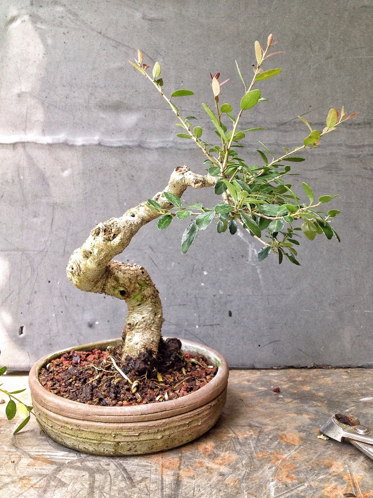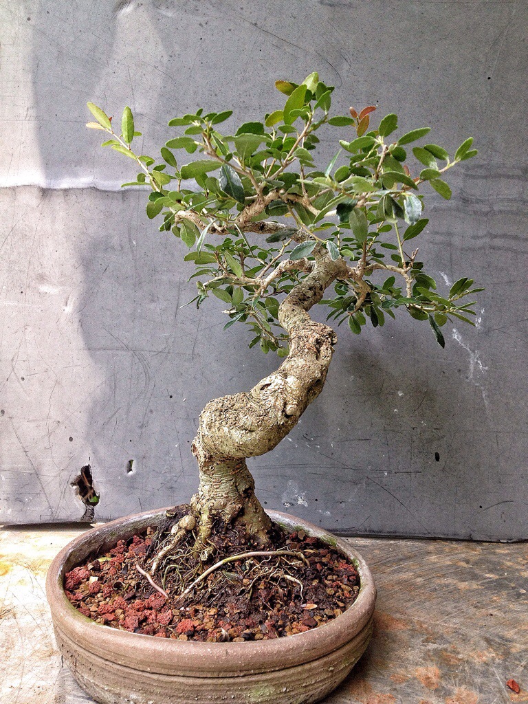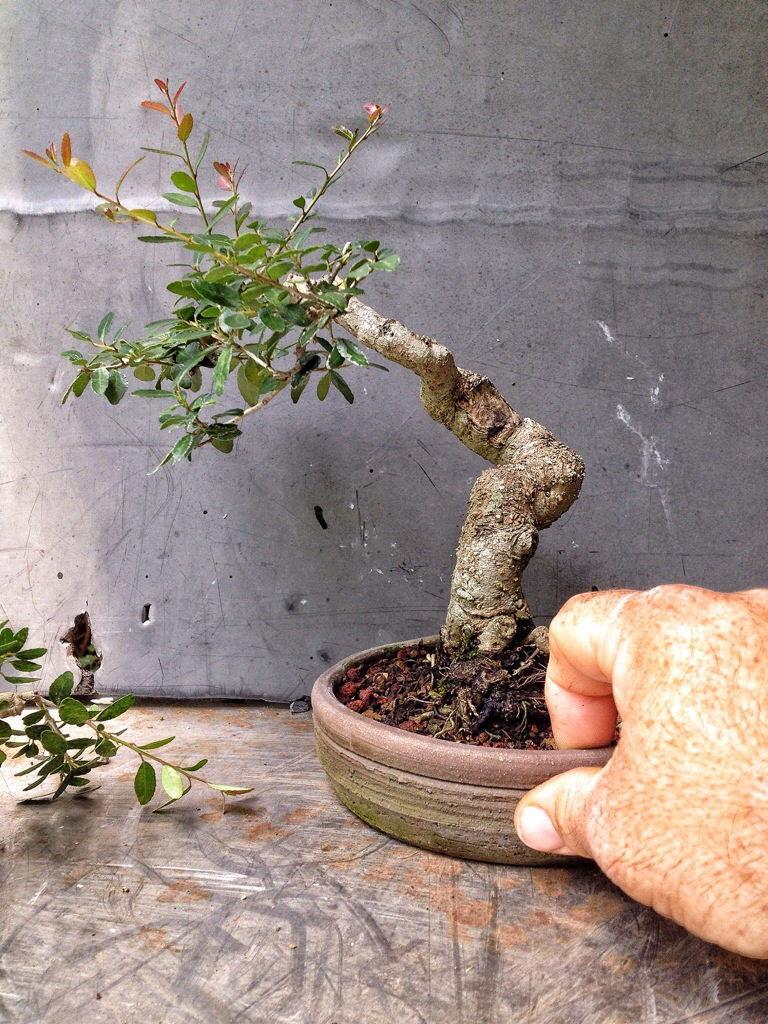 1. Basically, two years ago I pruned the top back and put it into a bonsai pot (a bigger one than this) cutting the roots.