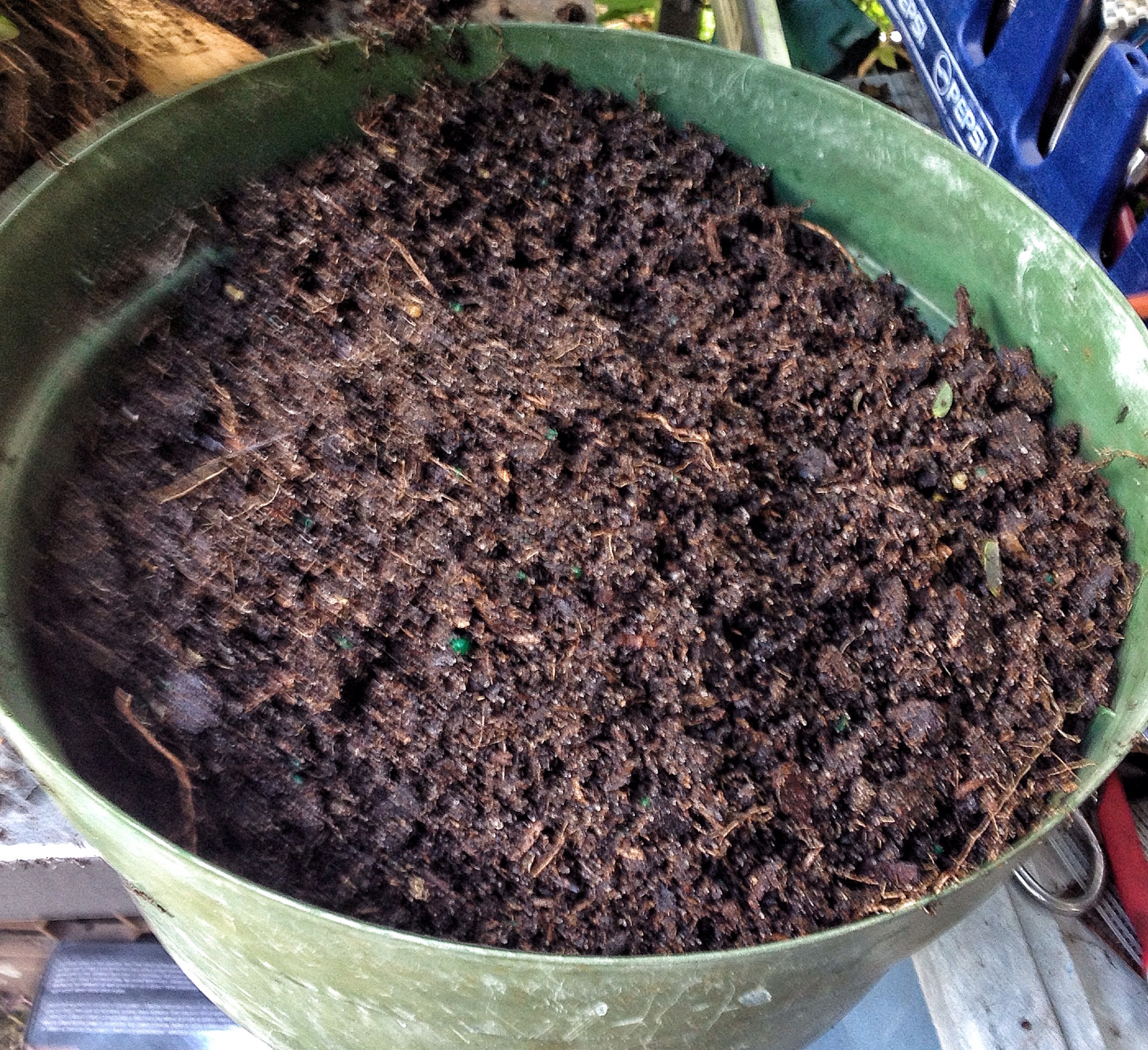 The jade had been in a three gallon container, which means about 2 gallons of potting soil left over.