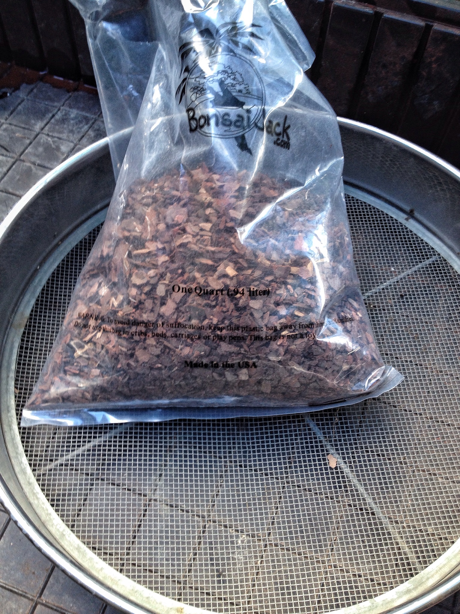 And a gallon of this stuff he’s calling “Bonsai Block”. The BonsaiJack website describes it as being a high fired clay product (fired at a higher temp than regular calcined clay, like Turface).