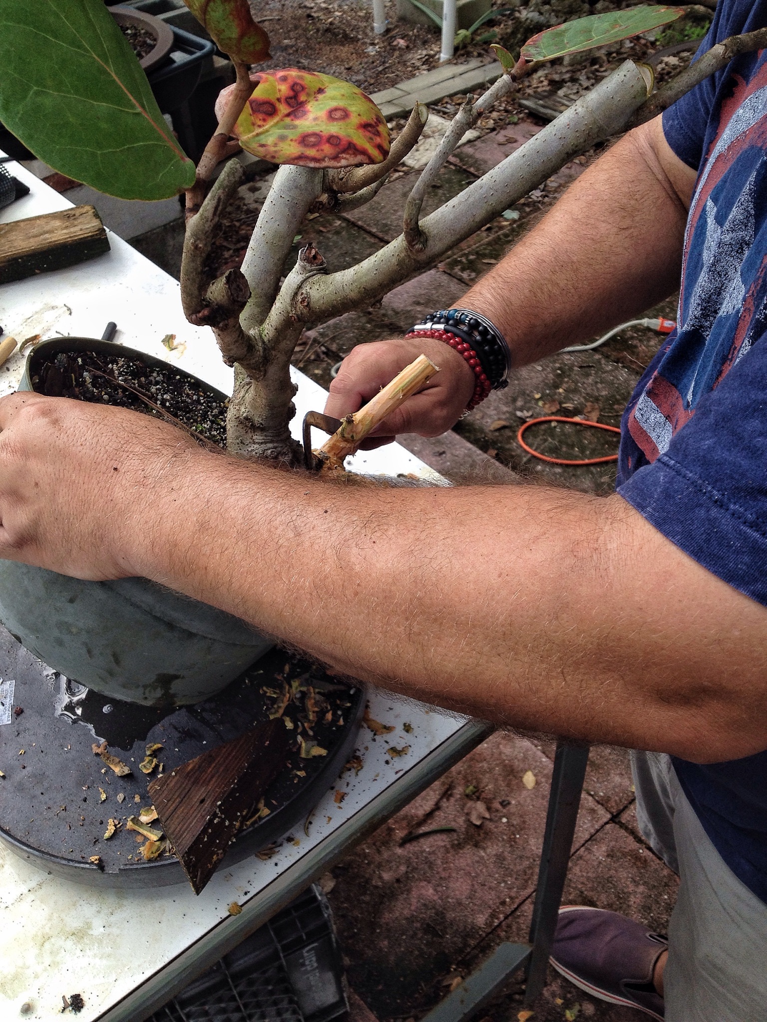 ….to help him develop a new way of looking at sea grape bonsai and to come up with an aesthetic (one could say a new, fresh aesthetic even) and even a new tropical bonsai style to use when developing sea grape stock.